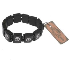 Bracelet élastiqué en bois noir - tête de mort - noir & blanc diamètre: 5cm