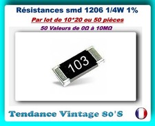 Lot de 10 Resistances SMD (CMS) 1206 Métal 1/4w 5% - Valeur de 0 Ohm à 10M Ohms