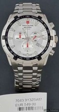 Avec Date et Chrono Cadran Plaqué Argent. Cadran Blanc avec Date et Chrono Gravé Swiss Alpine M ilitary by Grovana Diamètre 50 mm. Les points forts de la montre Swiss Alpine Military by Grovana. Bracelet Noir en Caoutchouc Silicone Gravé Swiss Alpine.