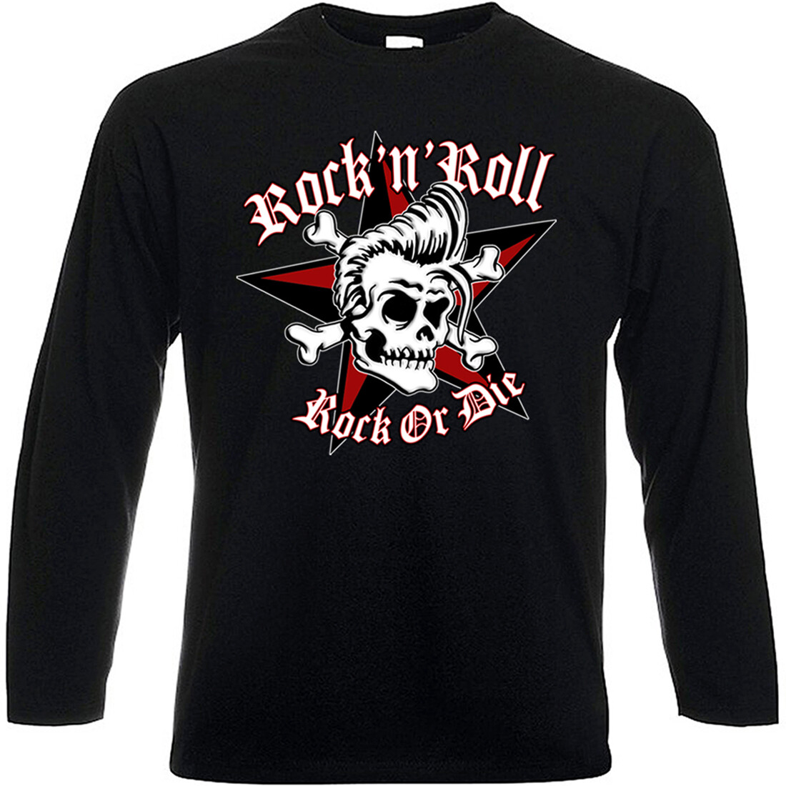 ROCK'N'ROLL. T- shirt manches longues neuf. T-shirt manches longues neuf. Bord côte à l'encolure, surpiqûre aux bords des manches et à la base. piquer Tribal motif motifs squellette squelette crâne death dead fête des morts haloween Punk Hard Hard Rock Goth Gothique Rocker Rockeuse rockabilly Rock-A-Billy Rock Rock'n Roll Rock-N-Roll Greaser Harley Davidson Hardcore HARD CORE.