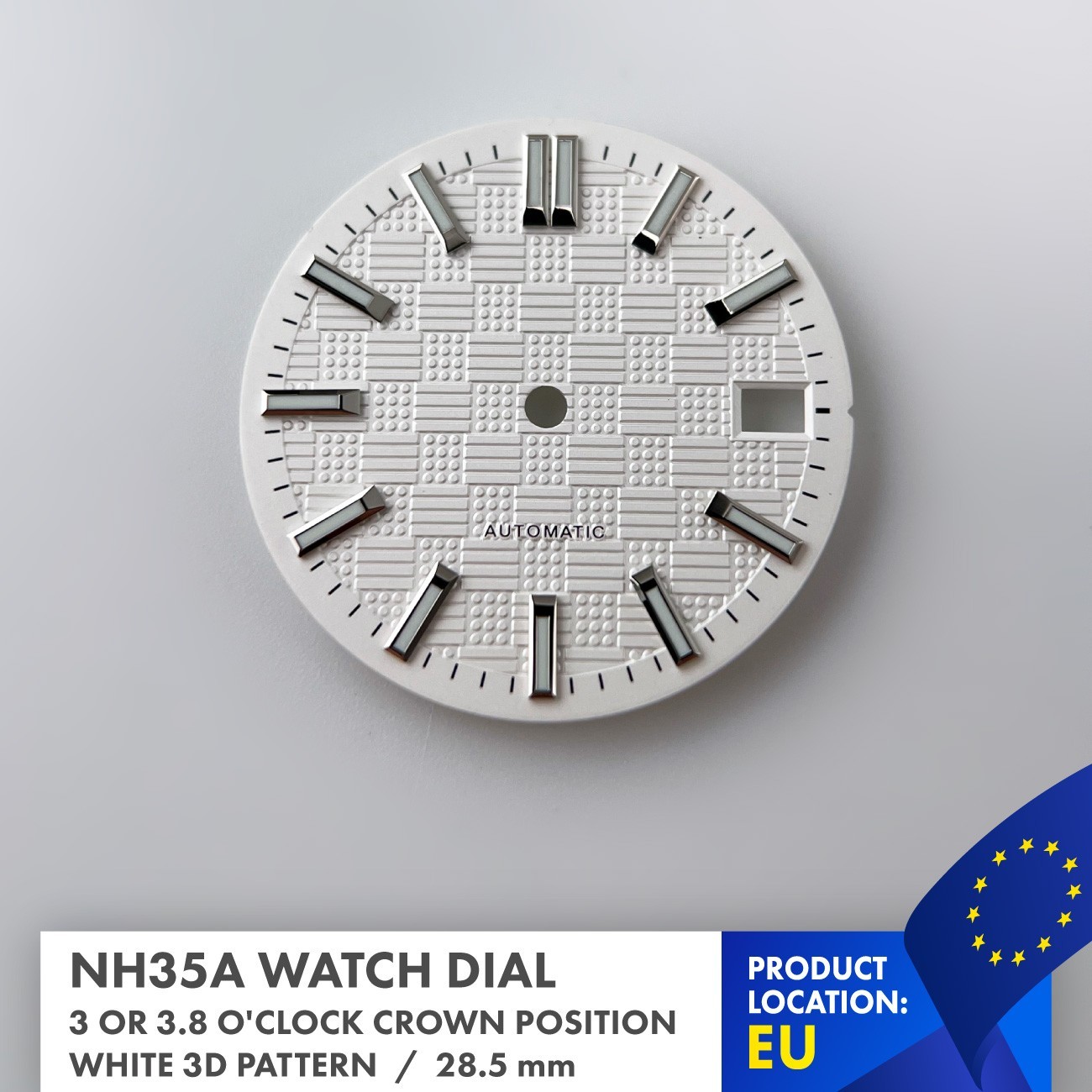 Cadran de montre stérile 28,5 mm compatible avec NH35 - motif 3D blanc et mar...
