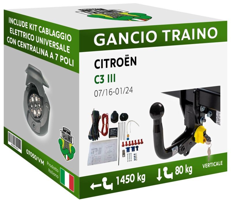 Attelage Démontable Verticale pour Citroën C3 III Hayon 16-24 7 câblage