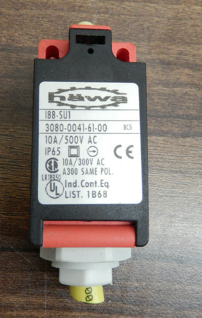 Bouton-poussoir limite, interrupteur de fin de course 188-SU1 häwa. Je vous prie de noter qu'il ne s'agit que d'un échantillon de photo à titre d'illustration. Les données techniques peuvent être extraites de la plaque signalétique.