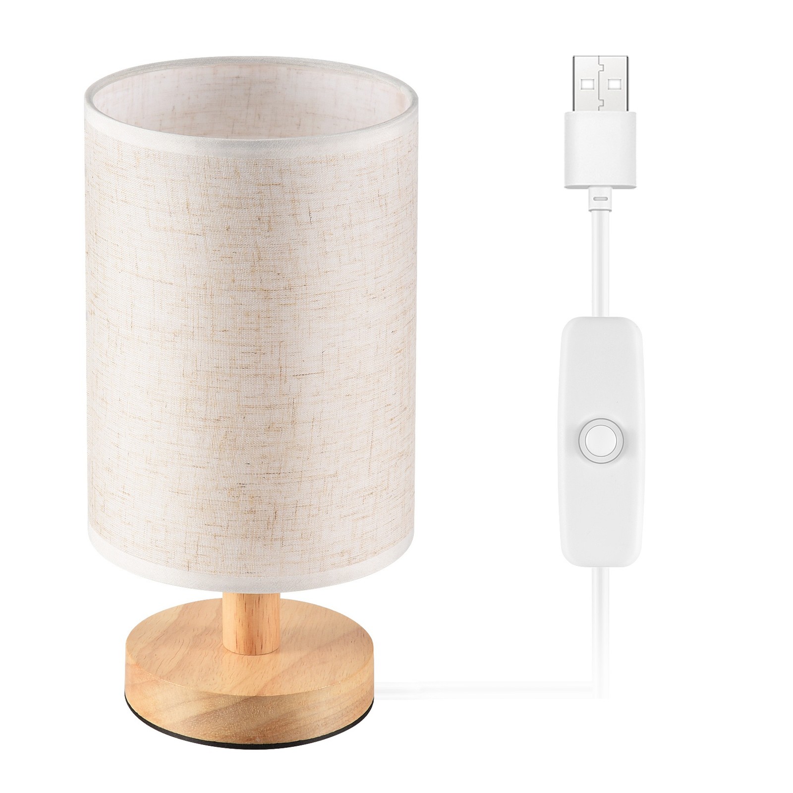 DC5V Lampe de Table de Chevet Ronde Lampe de Chevet avec Abat-Jour en Tissu2705