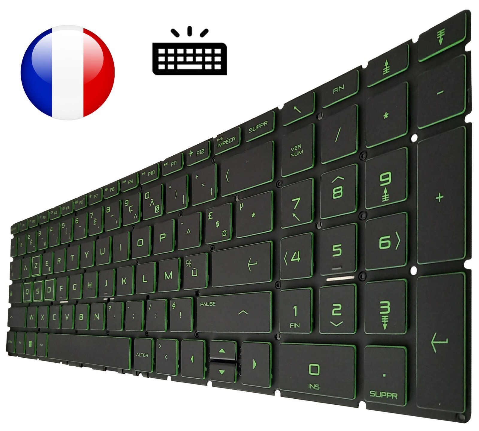 Clavier Français AZERTY. Clavier en lettrage vert avec f euillet de rétro-éclairage inclus. uvre pour trouver une solution. Le délai de réception moyen constaté est de 48-72 heures en France Métropolitaine.