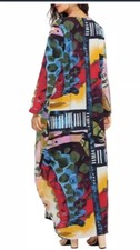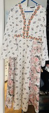 Jupe doublée. Très remarquée lors de cérémonie d'été ou soirée lors de voyages. Très facile d'entretien. Longueur totale de la robe prise au milieu épaule 144cm. Plastron devant en smocks.