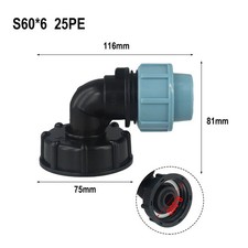 Styles : sortie coudée 20 mm, sortie coudée 25 mm, sortie coudée 32 mm. Conception humanisée : le connecteur dispose d'une vanne au design humanisé. Nom de la piè pour ce : adaptateur de réservoir IBC.