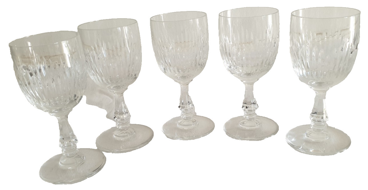 Anciens 5 verres à vin blanc en cristal signé Saint Louis modèle Liane