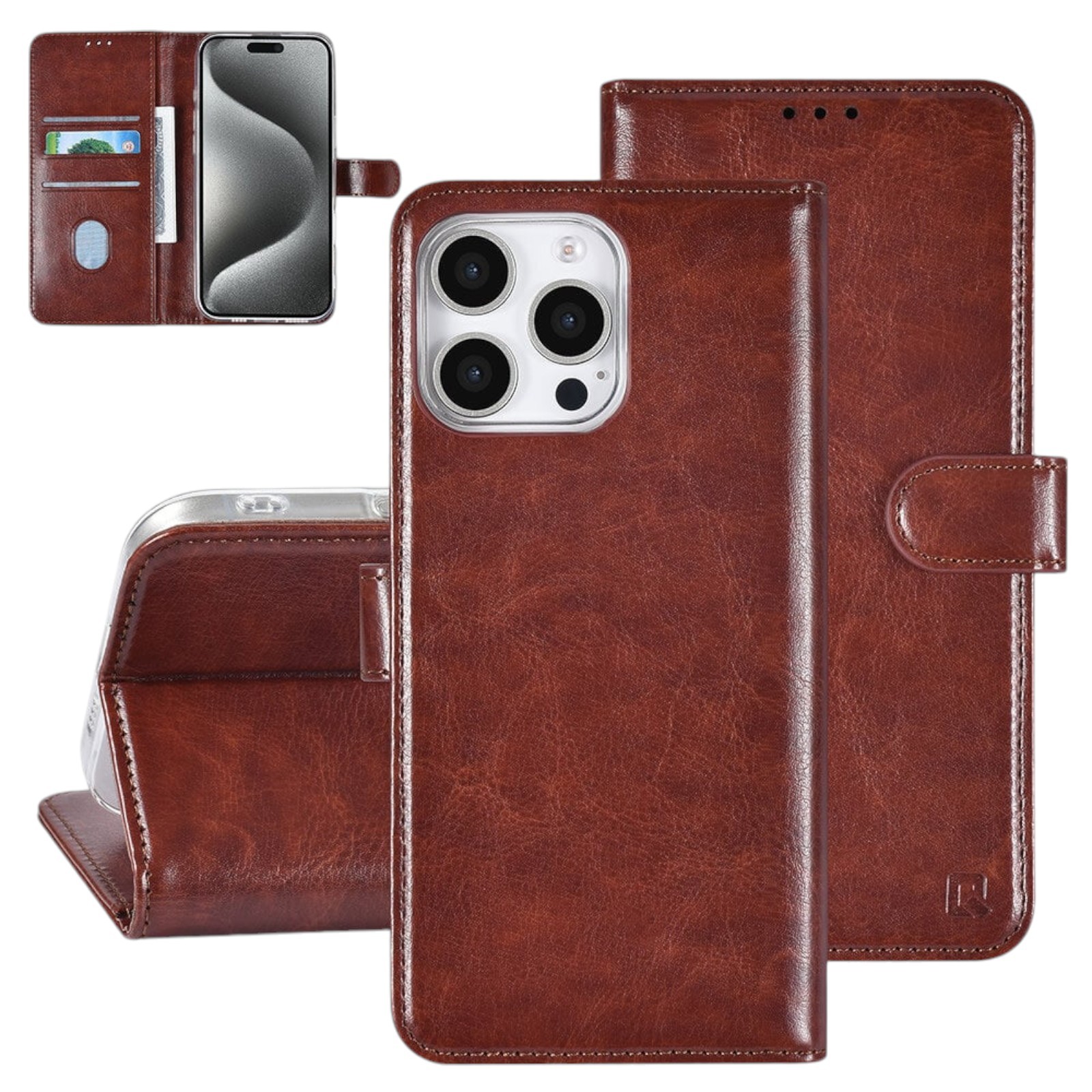 TUNIQ Coque Livre Pour iPhone 16 Pro Max Avec Porte-Cartes Marron