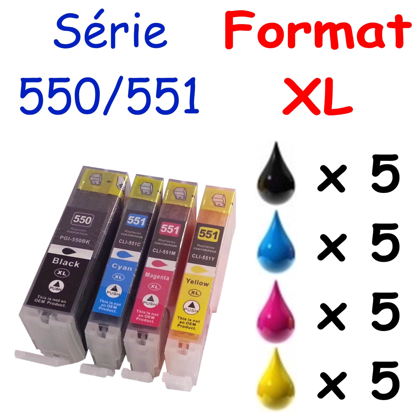 Cartouches d'encre génériques pour imprimante Pixma MG5550 ( Canon 550 551 XL )