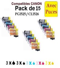Pack de 15 cartouches génériques - Série 525/526 XL pour imprimantes Canon