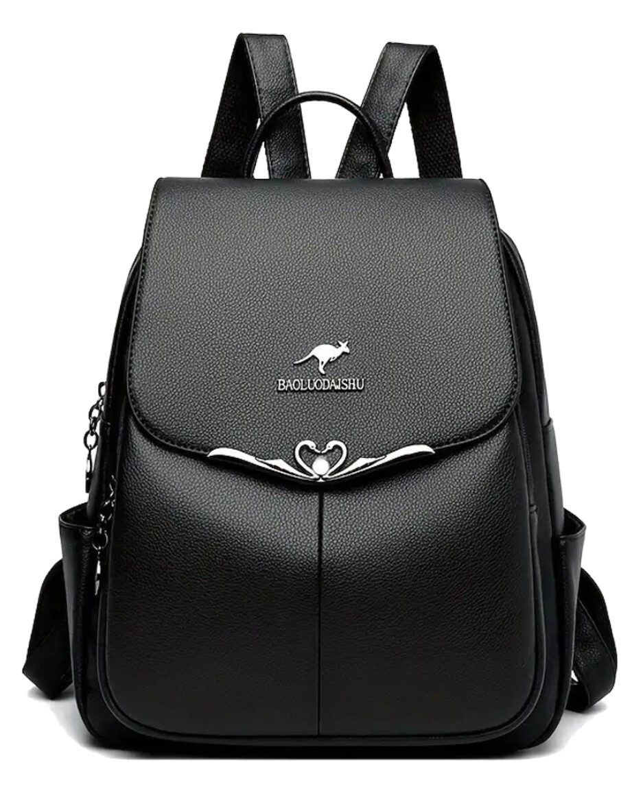 Sac à dos femme en cuir noir, élégant éco-cuir, cygnes urbains