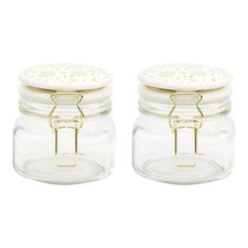 Hauteur bocaux 14 cm. Verre pressé.