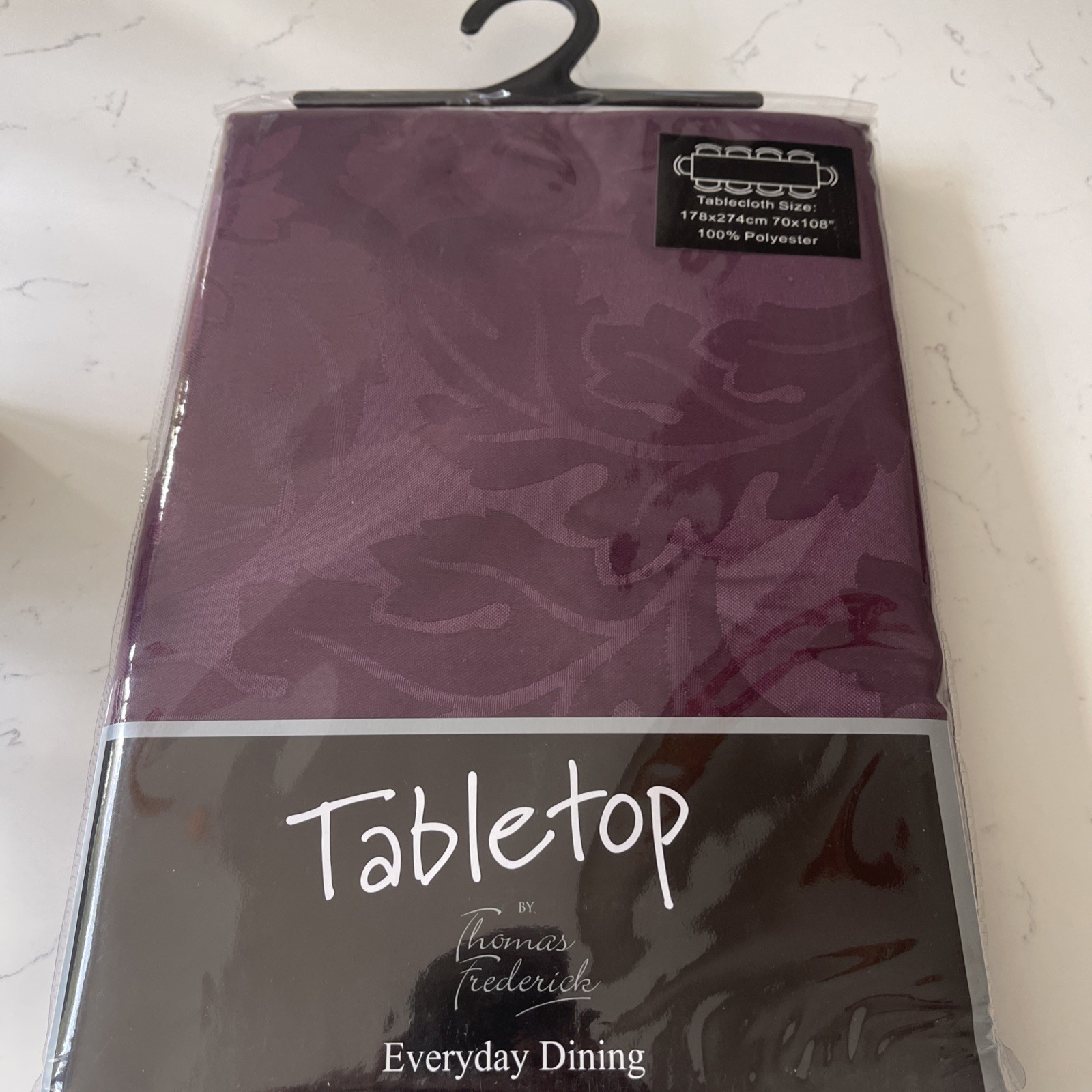 Cette luxueuse nappe oblongue en jacquard floral violet de 70 po x 108 po de Thimas Frederick ajoute une touche d'élégance à n'importe quelle cuisine. Fabriqué à 100 % en polyester, il présente un magnifique thème de roses qui apporte une touche de sophistication à votre salle à manger. La forme oblongue et la couleur violet vif le rendent parfait pour ajouter une touche de glamour à la décoration de votre cuisine. Parfaite pour les occasions spéciales ou les repas de tous les jours, cette nappe impressionnera à coup sûr.
