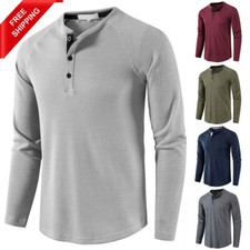 T-Shirt Uni À Manches Longues Pour Homme Coupe Ajustée Boutonné Col En V /