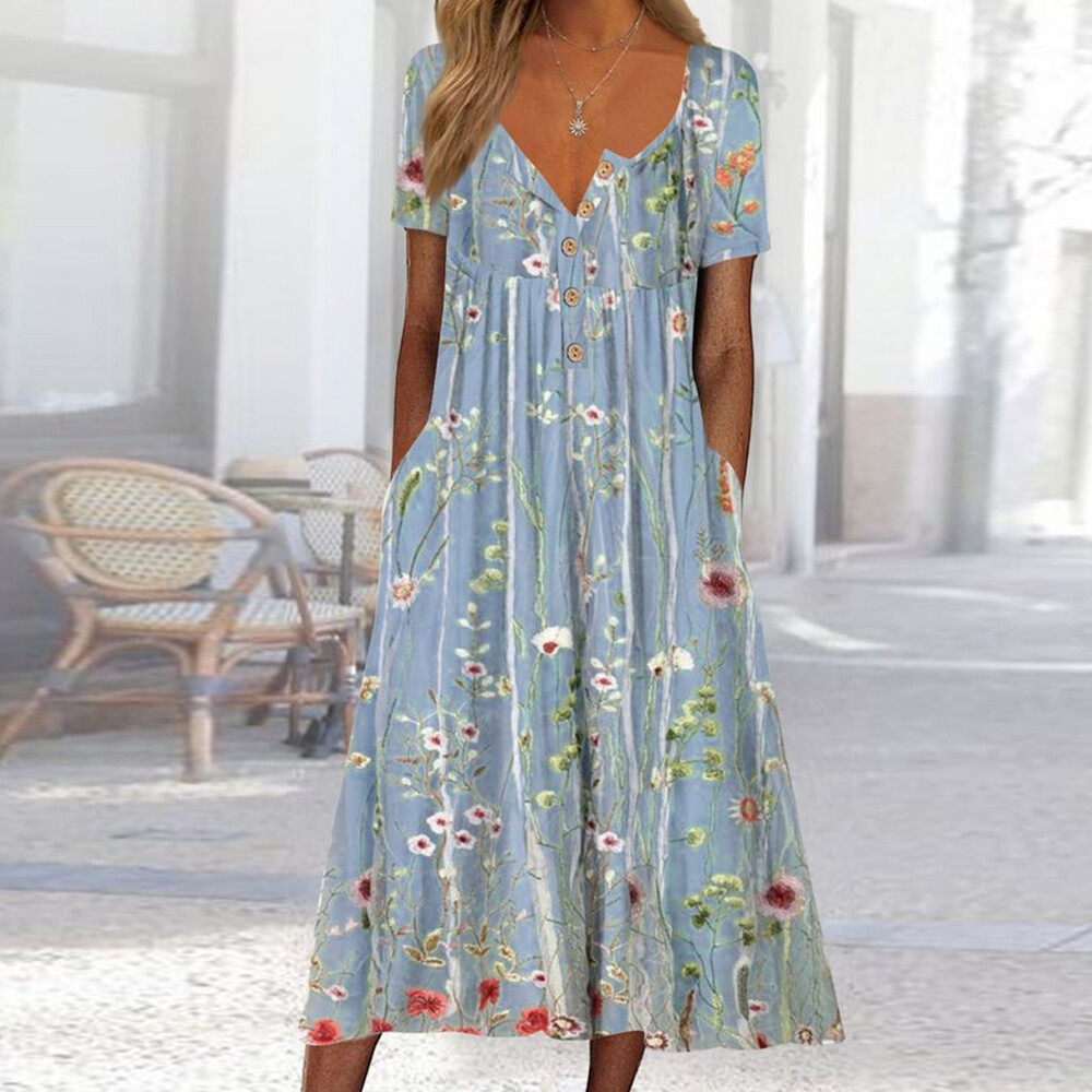 Femmes Boho Floral Maxi Robes Longues Dames Col En V Vacances D'été Plage /