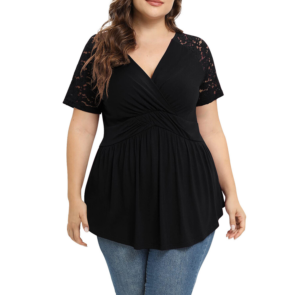 Tunique Plissée Pour Femmes Haut À Manches Courtes T-Shirt Chemisier Pull T- /