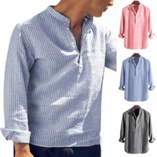 Chemise Rayée Rétro À Manches Longues Pour Hommes Boutonnée Tenue /