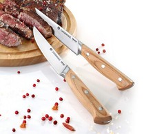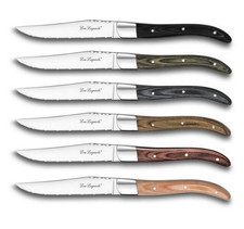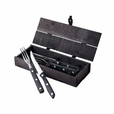 WMF Nuova couverts à steak 12 pièces en acier inoxydable poli WMF Nuova couverts à steak 12 pièces en acier inoxydable poli WMF Nuova couverts à steak 12 pièces en acier inoxydable poli Quiconque aime les steaks juteux a besoin de couverts bien aiguisés à portée de main. Le steak nécessite des couteaux avec une lame particulièrement tranchante en acier spécial à lame dentelée. Ces couteaux coupent puissamment vos aliments grillés, même avec une croûte croustillante, ils glissent en douceur même à travers une viande épaisse. Les fourchettes à couverts à steak ont des dents extra-longues et pointues pour embrocher les morceaux de viande avec une précision extrême. Les plats d'accompagnement tels que les pommes de terre au four ou les légumes peuvent être facilement coupés avec le bord exté.