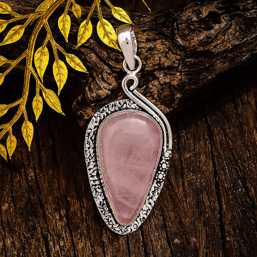 Superbe pendentif fait main en argent sterling 925 pierre précieuse quartz ro...