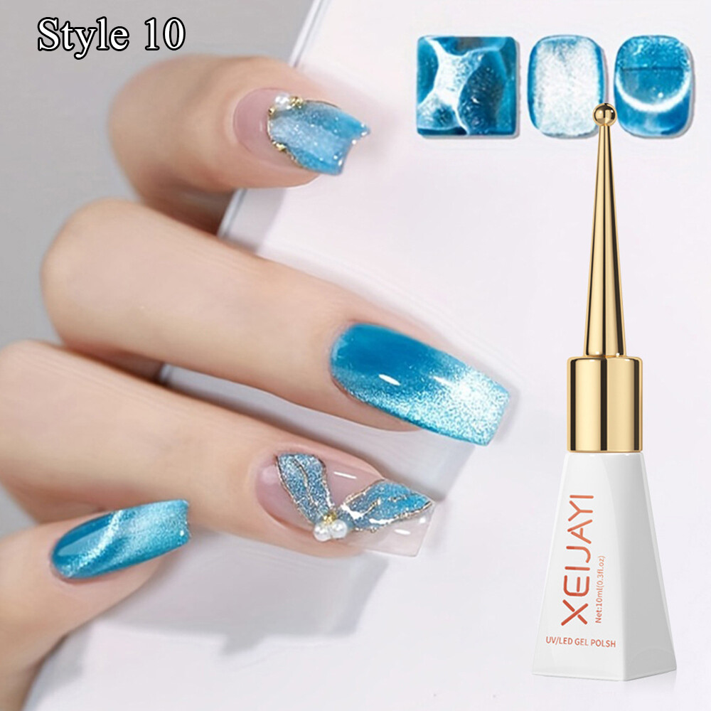 Nom du Type: vernis Gel magnétique œil de chat. Tu-tout le rétroéclairage œil de chat pendant 60 secondes. 【Texture fine】 Le gel est lisse, les paillettes sont fines, il est facile à étaler et il est facile à appliquer.