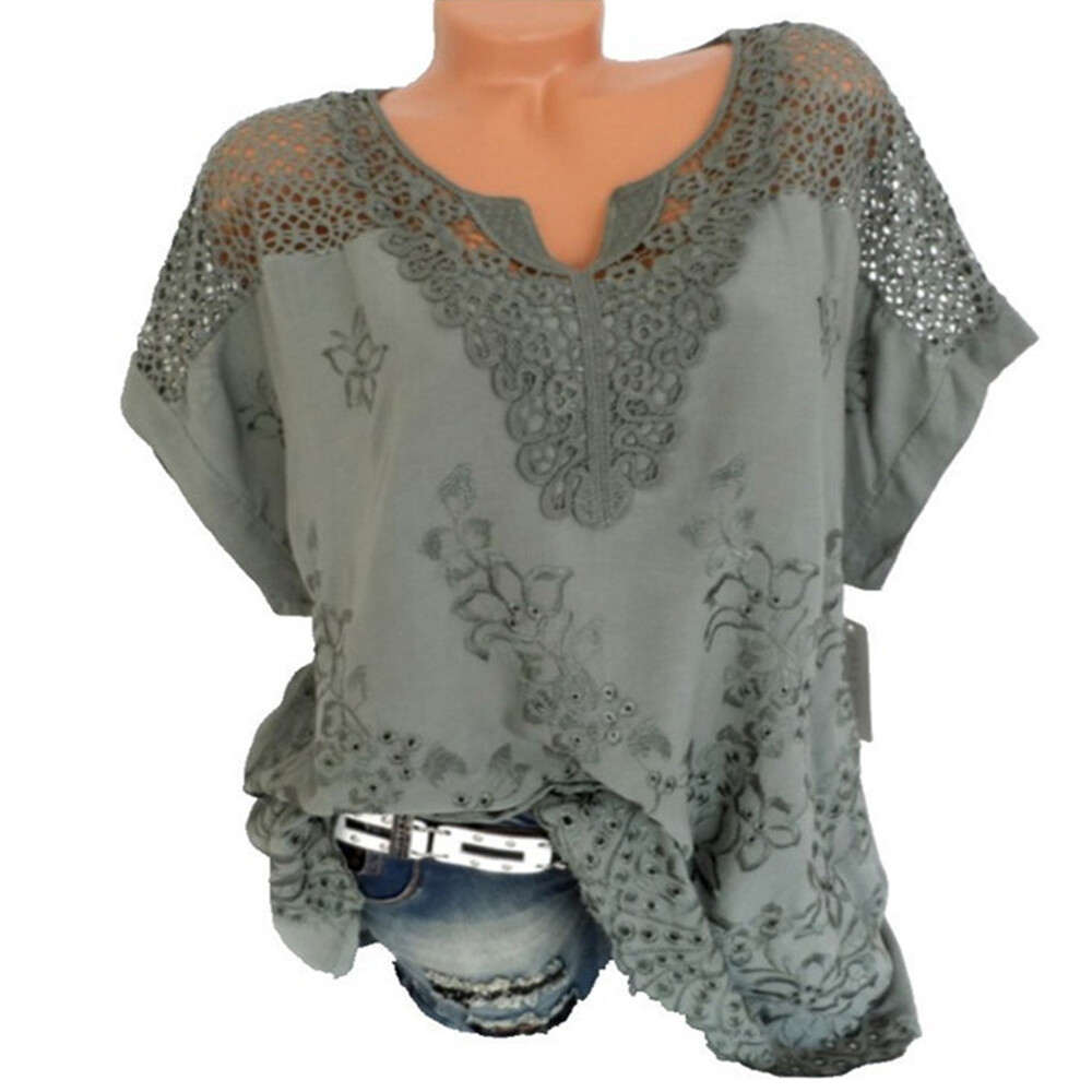 Chemisier T-Shirt Tops Tunique T-Shirts Pull Manches Courtes Col V Grande /