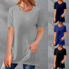 T-Shirt Long D'été Pour Femme Grande Taille Chemisier Pull De Vacances Haut /