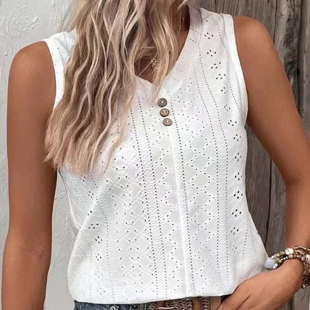 Débardeur D'été Pour Femmes T-Shirt Sans Manches Chemisier Ajouré Hauts /