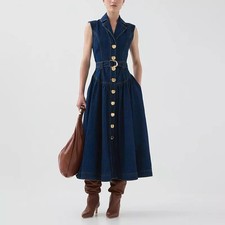 Robe Longue En Denim Sans Manches Pour Femmes Maxi Vacances Robes /