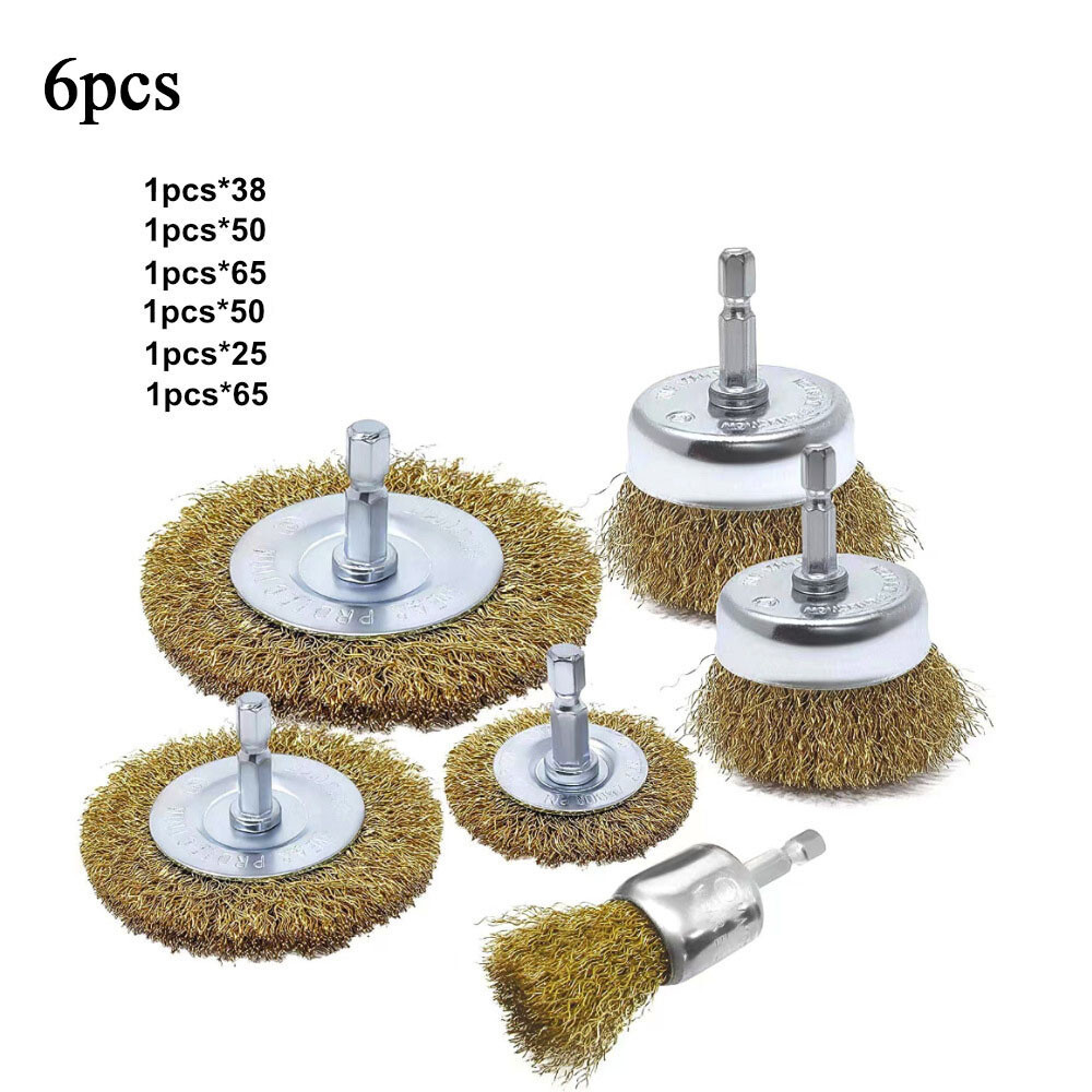 Lot de 6 brosses coupelles métalliques. Ensemble de brosses métalliques en acier inoxydable conçu pour un accès facile aux trous étroits et aux zones confinées. Ces brosses métalliques sont fabriquées en fil grossier d'acier inoxydable et ne rouillent pas.