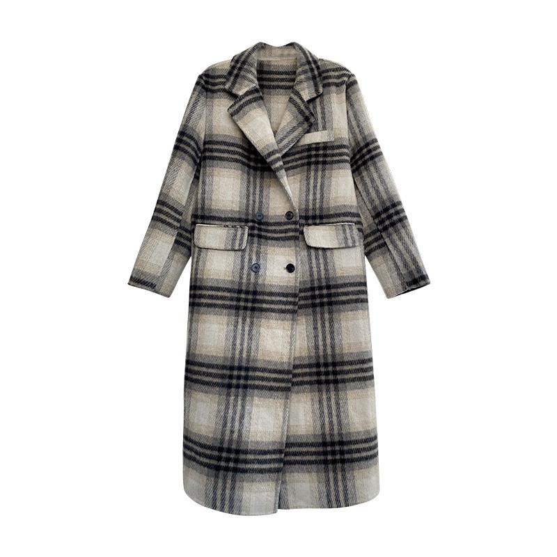 Manteau long en laine douce à revers et à double boutonnage pour femmes en hiver