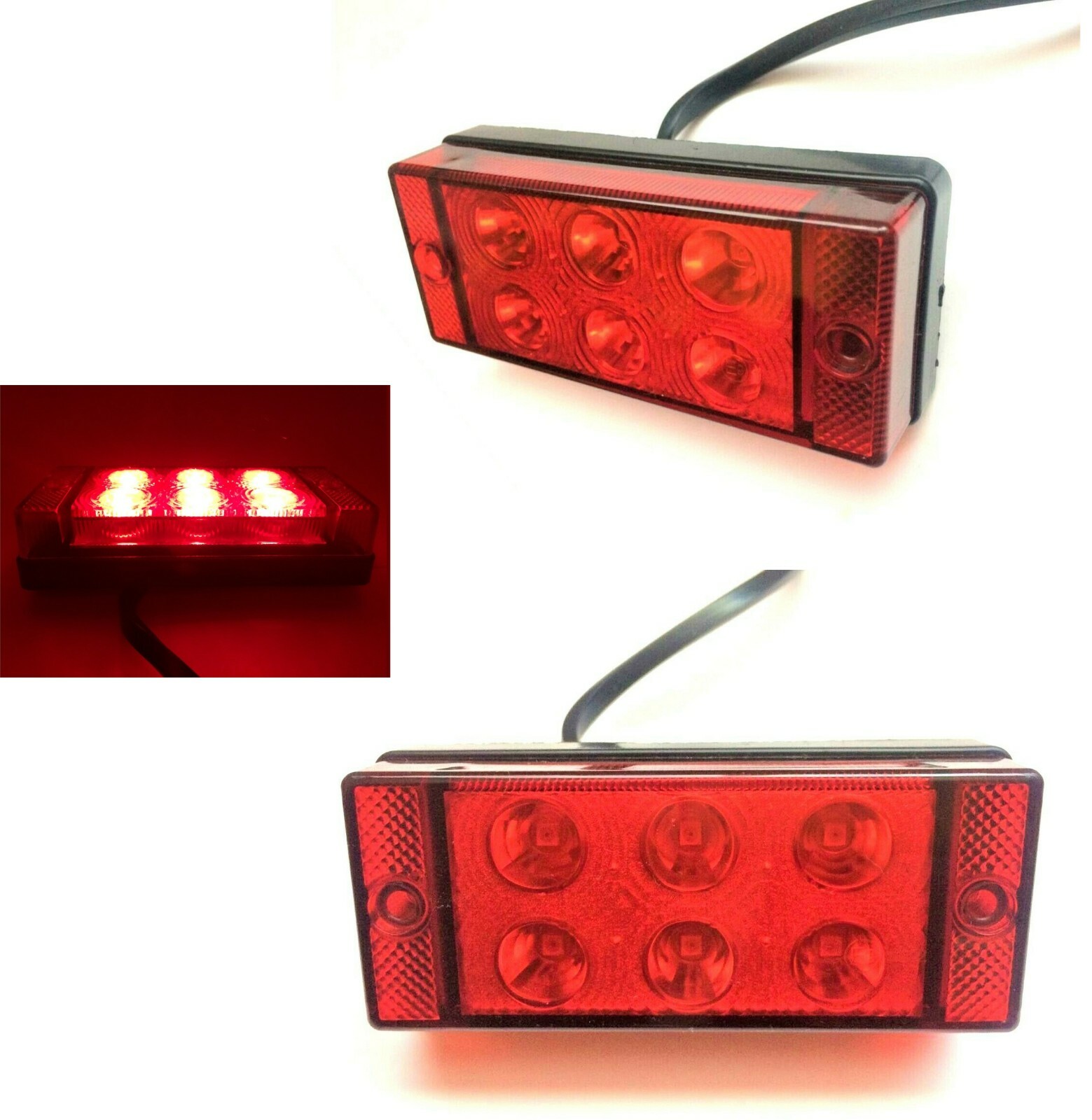 Nous vous proposons deux feux antibrouillard arrière LED universels. 2 pièces dans un ensemble Convient à de nombreux véhicules commerciaux! Caractéristiques du produit: Largeur: 107,6 mm Hauteur: 45,6 mm Profondeur: 24,4 mm Espacement des trous: 90 mm Couleur: rouge Couleur du boîtier: noir Matériau du boîtier: plastique Source lumineuse: 6 LED Tension de fonctionnement: 12V / 24V Puissance nominale: 2 watts Câble intégré: câble plat, 2x0,75 mm² (env. 50 cm de long) Avec homologation routière européenne E9 Nouveau & orig Si vous avez des questions, contactez-nous via le système de messagerie d'eBay. Jetez également un œil à nos autres enchères. .
