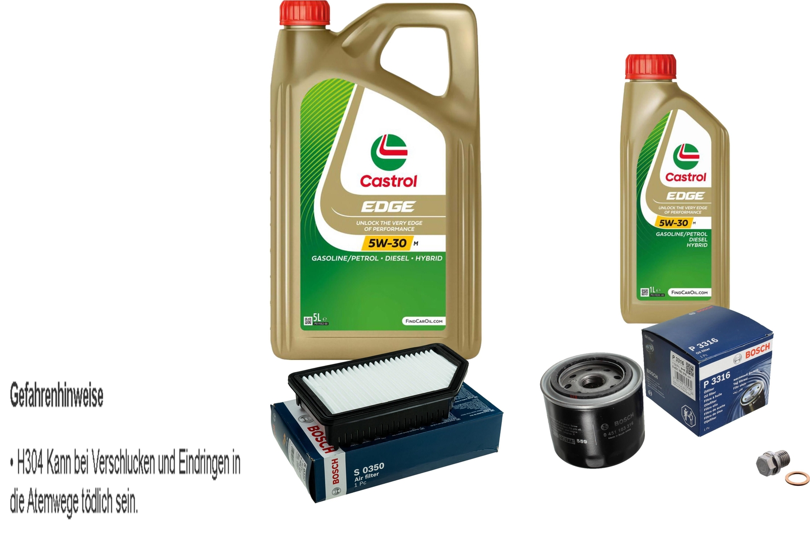 BOSCH Inspection Set 6 L Castrol 5W-30 Pour Hyundai Veloster 1.6 GDi Accent