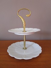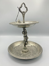 Serviteur à 2 étages présentoir à gâteaux en faïence de Lunéville support argent