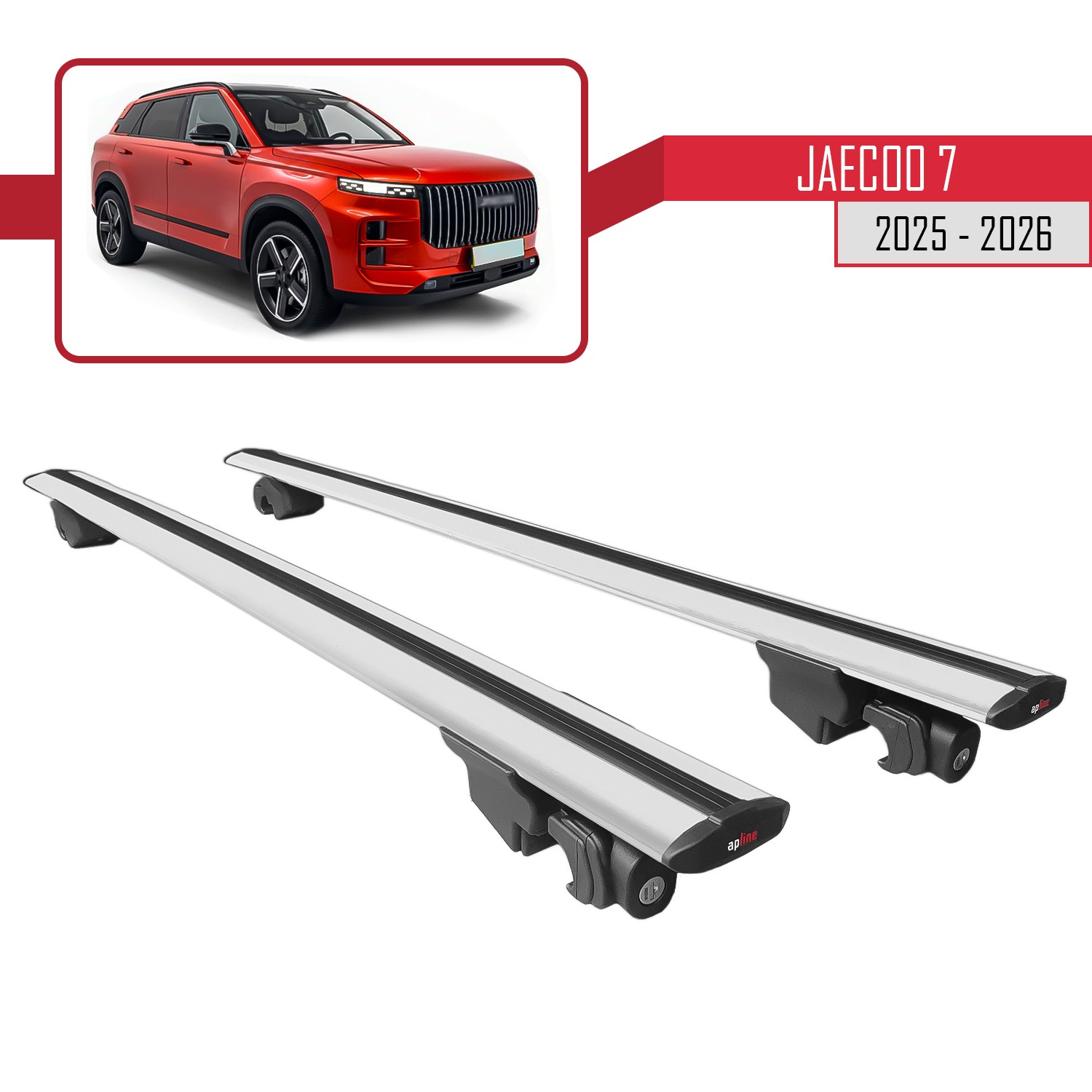 Pour Jaecoo 7 2025-2026 HOOK Barres de Toit Gris Aluminium 2 Barres