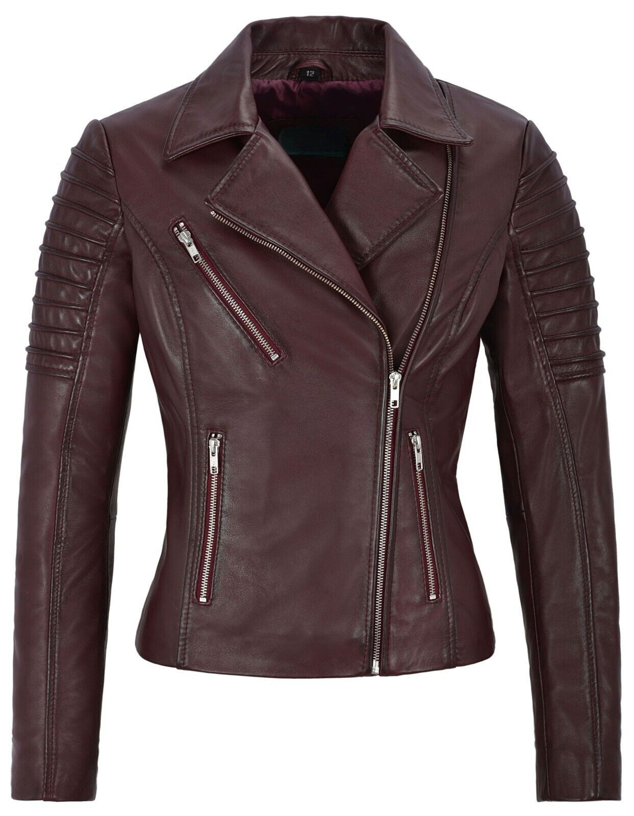 Veste En Cuir Bordeaux Pour Femme En Agneau Pur Veste De Mode Designer Ajustée