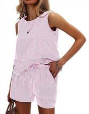 Ensemble 2 Pièces Sans Manches À Col Carré Pour Femme Gilet Uni En Lin Short /