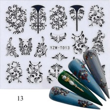 Convient pour le vernis à ongles, l'acrylique UV, l'acrylique, etc. Facile à appliquer sur les ongles naturels ou artificiels. Autocollants à ongles 1pc 3D. Modèle: fleur, lettre. Matériel: papier autocollant.