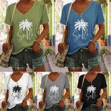 T-Shirt Pull Tunique Chemisier Hauts Col En V Manches Courtes T-Shirts Ample /