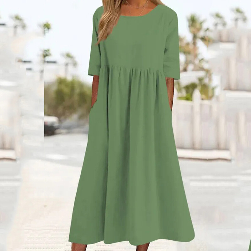 Robe Mi-Longue D'été Décontractée Pour Femmes Robe Trapèze Plissée Unie De /