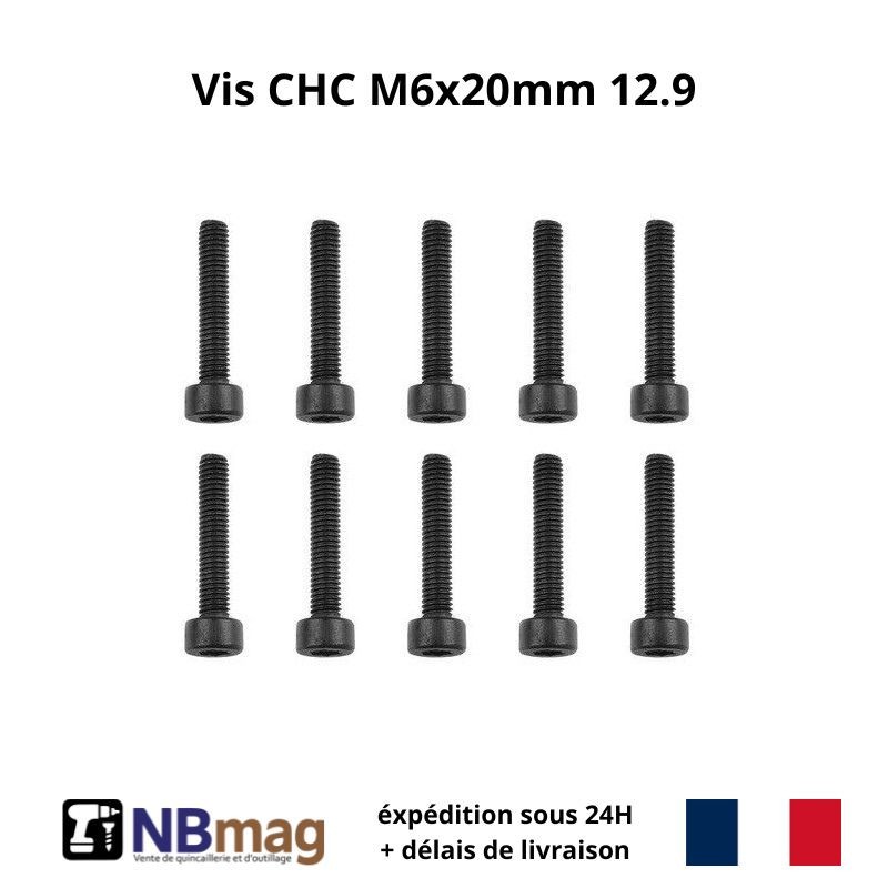 lot de 10 Vis Chc diamètre 6 X 20mm, Acier Noir, Résistance 12.9
