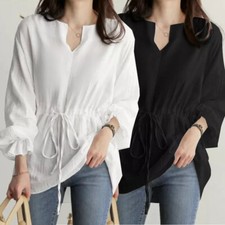 Femmes Été Col En V À Manches Courtes Pull Chemise Solide Blouse /