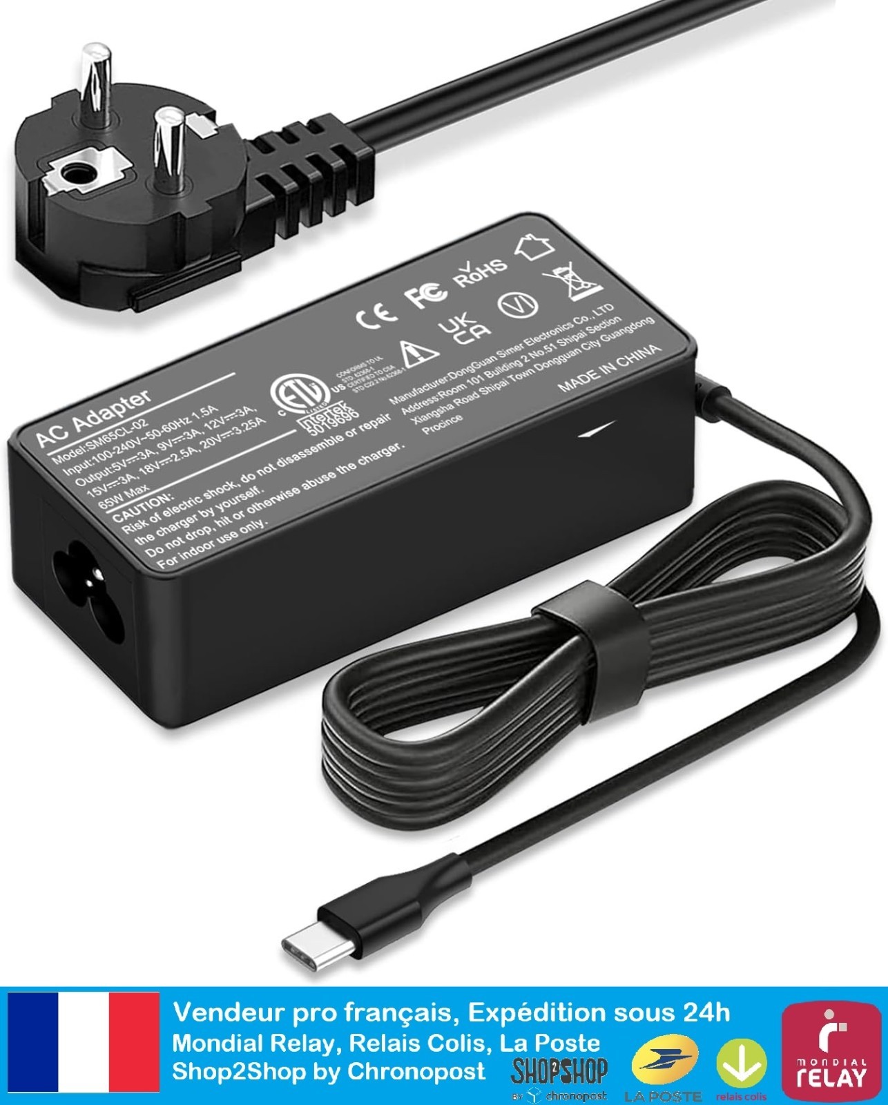 Chargeur 65W 45W USB C pour Acer Swift 3 5 Spin 5 Chromebook Spin 311 513 713