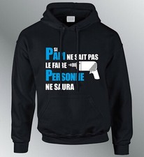 "SI PAPA NE SAIT PAS LE FAIRE PERSONNE NE SAURA". Sweat shi rt à capuche. Réalisé à la commande sur sweat shirt Hoodiebi-tons pré-rétréci de qualitéprémium (270g/m2) ,50% coton, 50% polyester. En cas d'erreur sur la taille, le tee shirt est échangeable s'il n'a pas été réalisé sur demande particulière.
