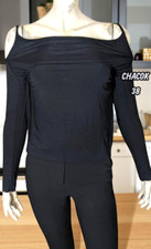 TUNIQUE LONGUE NOIRE NEUVE T 40/42/44. COL ROND, TUNIQUE NON CEINTREE, 2 PETITES FENTES DE CHAQUE COTE ,EPAULETTES. DE COULEUR NOIR MOTIF TON SUR TON ALTERNANCE DE NOIR SATINE ET NOIR MAT. LARGEUR EPAULES 40 CM LARGEUR POITRINE 53 CM LARGEUR DU BAS 55 CM HAUTEUR A PARTIR DU COU 77 CM.