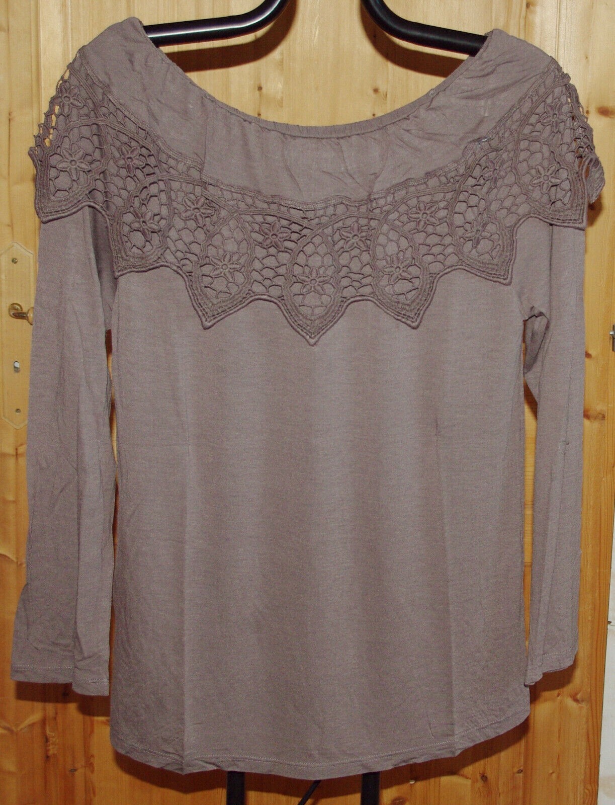Blancheporte TopTee-shirt à encolure volantée macramé taupe t 54 neuf