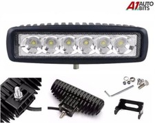 6 pouces. LAMPE À BARRE LUMINEUSE DE TRAVAIL 6 LED 18W 12V / 24V 1500 Lm. QG E - MARQUE * Barre lumineuse de travail LED super brillante. *Imperméable, durable, résistance aux chocs et aux vibrations *Boîtier en aluminium moulé sous pression, conçu pour une meilleure résistance à la chaleur *Supports de montage réglables en acier inoxydable *Puissance LED : 18 W (6 X 3 W) *Tension de fonctionnement : 10 V – 30 V CC. *Température de couleur : 6000K *Support de montage durable en acier inoxydable *Angle de lumière : 60 ° (faisceau d'inondation) Idéal pour les camions, les phares tout-terrain, les 4x4, les SUV, les UTV, les VTT, les mines, la navigation de plaisance, l'agriculture et les équipements lourds, etc. Barre de lampe de travail à large faisceau 1X 6 LED 1X supports de montage et rac.