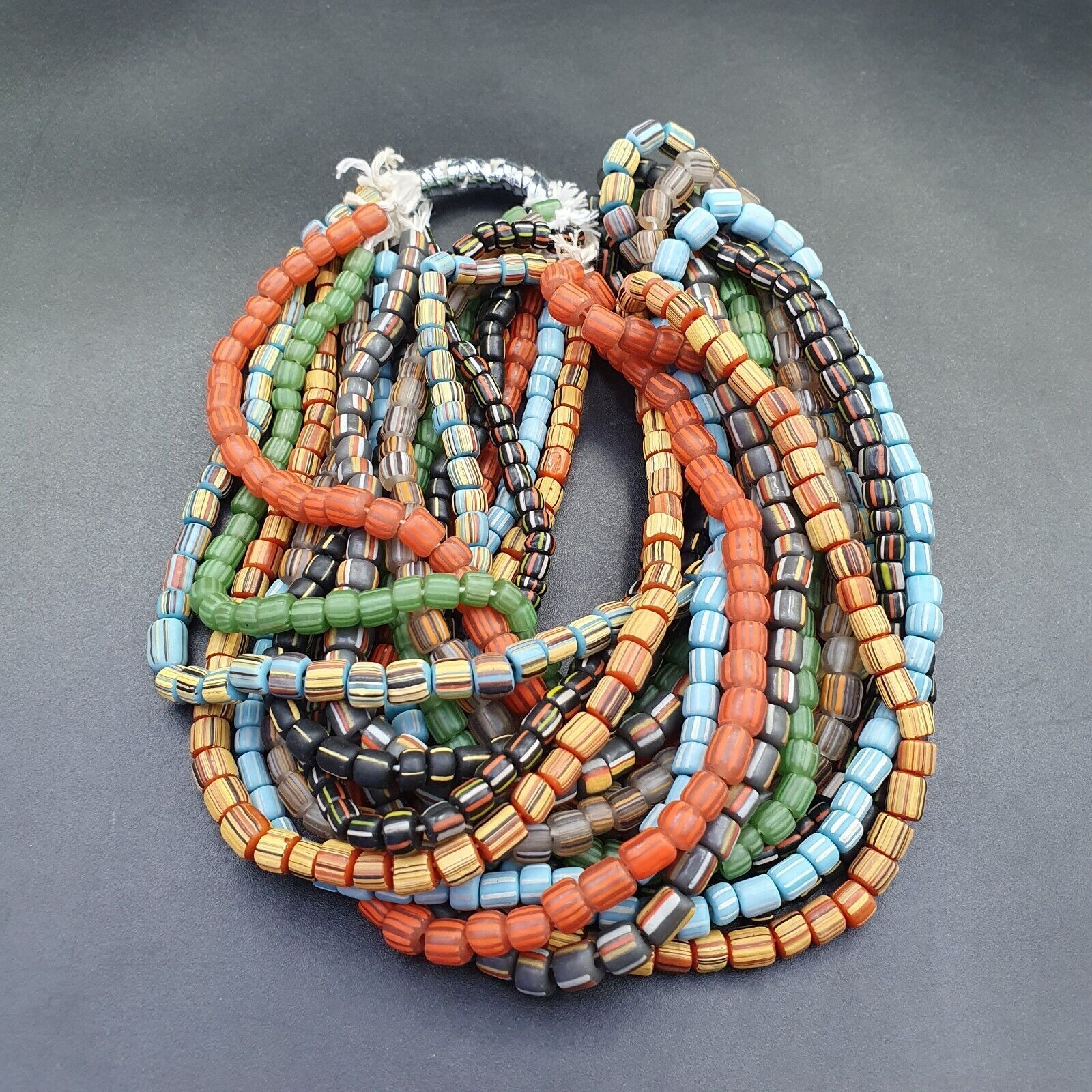 Lot9 brins collier vintage AFRIQUE rayures multicolores PERLES DE VERRE 5-7MM L7