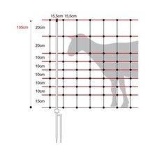 Sécurisez vos moutons, chèvres et agneaux avec notre filet à moutons robuste Horizon ! Le réseau électronique de 120 cm de haut et 50 m de long offre une conductivité élevée (0,84 ohm/m) et des poteaux à double pointe pour une stabilité par tous les temps. Facile à construire et durable, idéal pour un élevage sûr. Kit de réparation et panneau d'avertissement inclus !.