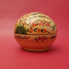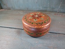 Ancienne Boîte À Bijoux Ronde En Bois Avec Décor Peint Vintage. L’objet est en bon état , à noter néanmoins un trou en dessous de la boîte ( voir photos ). Diamètre : 14 cm. Hauteur : 6 cm. Poids : 334 g. CHAQUE COLIS EST PRÉPARÉ MINUTIEUSEMENT AFIN DE GARANTIR UNE BONNE RÉCEPTION DE VOS ACHATS EN BON ÉTAT. Livraison MONDIAL RELAY OU COLISSIMO pour la France. Choix à définir lors de votre règlement, voir détails livraison dans l'annonce. Livraison MONDIAL RELAY OU HAPPY POST pour l'Europe. POUR L'INTERNATIONAL MERCI DE ME CONTACTER AFIN DE DÉFINIR LE SERVICE DE LIVRAISON AINSI QUE LE TARIF DE LIVRAISON. Nº214